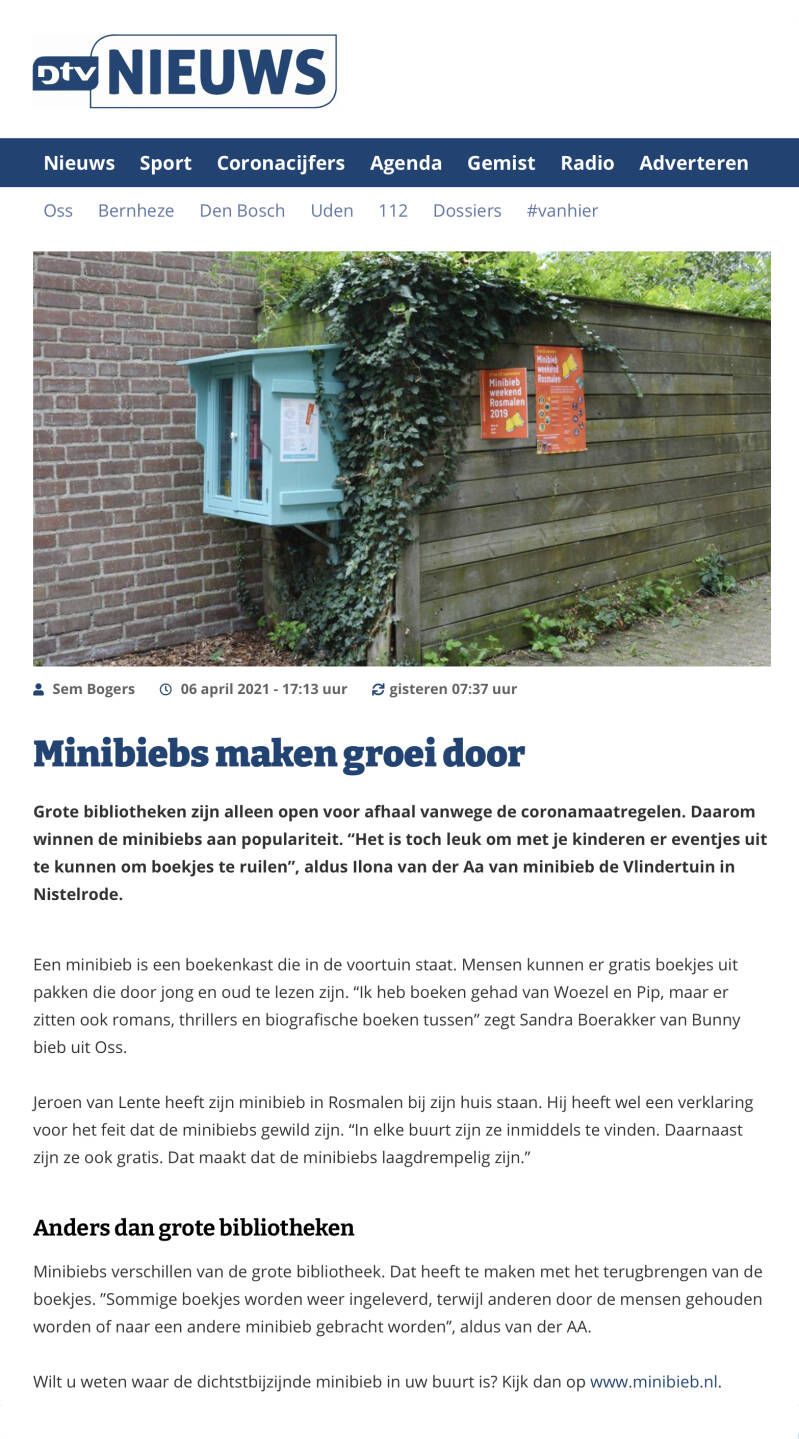 - Item over Minibiebjes in Oss, Nistelrode en Rosmalen door Megan Hanegraaf en Wilco Zonneveld