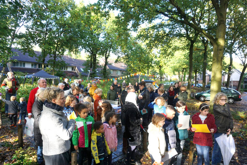 Vele mee-makers, de kinderen hun (groot)ouders en veel wijkbewoners kwamen naar de feestelijke opening.